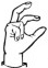 На ћирилици написано ТАМАРА БЕЛЕНЗАДА састоји се из 15 слова [?]. Исписано ћириличном једноручном азбуком за глувонеме: